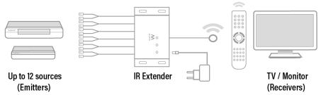 O Kit Extensor EW1580 permite controlar até 12 dispositivos de A/V controlados por infravermelhos. Basta colocar o lado de infravermelhos do emissor em frente ao recetor de infravermelhos do dispositivo de A/V. Ligue-o ao extensor e ligue o recetor de infravermelhos. Coloque o recetor de infravermelhos próxima do televisor ou noutro local apropriado (máx. 10 m) para apontar com o controlo remoto. Assim poderá controlar o seu dispositivo de A/V se o mesmo estiver dentro de um armário fechado. O sensor de infravermelhos de alta sensibilidade evita atrasos.