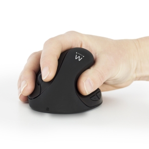 | O rato ergonómico sem fios EW3150 de alta precisão com 1600 PPP, é uma excelente solução para quem utiliza o computador durante períodos prolongados. Este rato ergonómico permite prevenir e reduzir diversos sintomas comuns de lesões de esforço relacionadas com a mão<>rato. Trabalhe de forma mais confortável graças ao design ergonómico. A mão, o pulso e o antebraço terão um apoio mais natural. O rato ergonómico sem fios EW3150 está equipado com cinco botões e uma roda de deslocamento. O interruptor para ligar/desligar impede a descarga da bateria recarregável. Carregue o rato com o cabo de carregamento incluído. A bateria está sem carga? Ligue o cabo USB e continue a utilizar o rato com o cabo ligado.