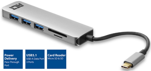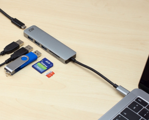 | Connect 3 USB-A devices to your laptop with USB-C with the AC7050 3-Port USB-C 3.2 Gen1 (USB 3.0) Hub. Besides, the AC7050 is also equipped with a micro SD/SD card reader and USB-C pass-through port with Power Delivery. The hub is a plug and play device. No additional power supply is needed.